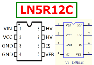 he LN5R12C is a high-performance, current-mode PWM Controller. Built-in high-voltage power switch, at 85-265V Of the wide grid voltage range of up to 12W Continued output power. Cost-effective production of bipolar workers Art production of the control chip, combined with high-voltage power tube Integrated package to maximize the savings of the entire product Body cost.